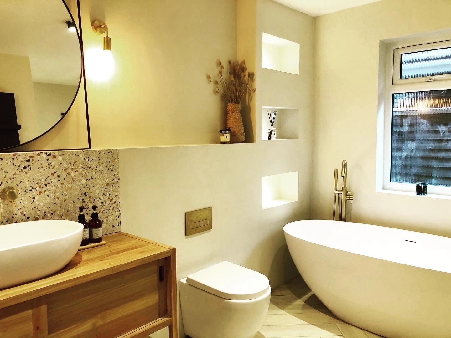 A stunning, hard wearing, completely waterproof finish, ideal for bathrooms, wet rooms, swimming pool areas or indeed any area where a durable but elegant finish is required. Micro-cement is also a perfect flooring solution! A brilliant alternative to painted walls or tiling, its damp proof, waterproof and wipes clean.